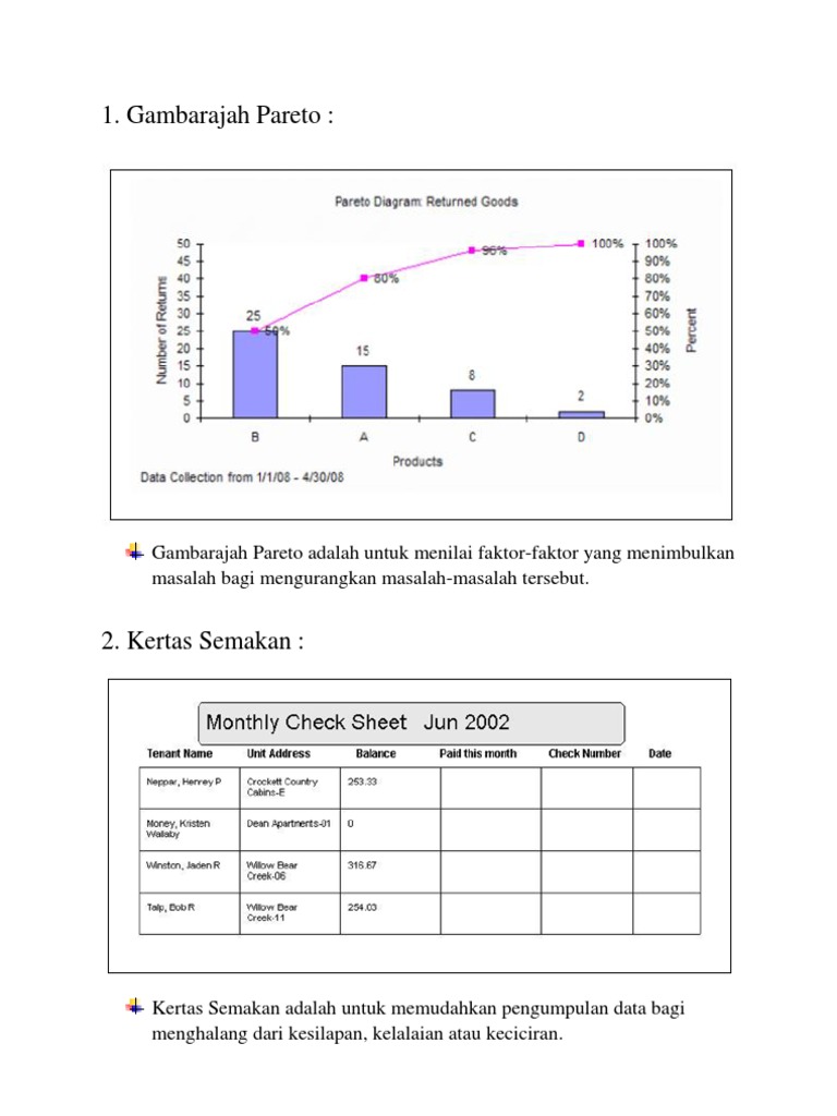 Konsep Gambarajah ParetoKonsep Gambarajah Pareto Kebanyakan daripada kecacatan ataupun kerugian kewangan adalah disebabkan oleh hanya beberapa item kerosakan sahaja.
