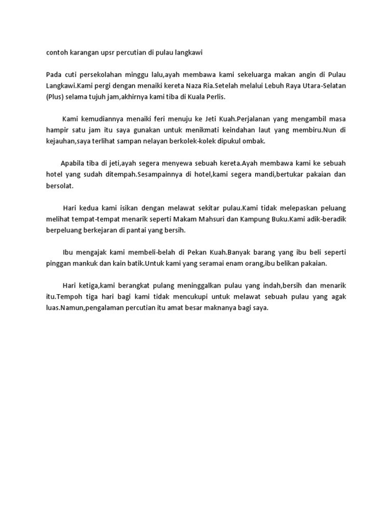 Contoh Karangan Upsr Percutian Di Pulau Langkawi Pdf
